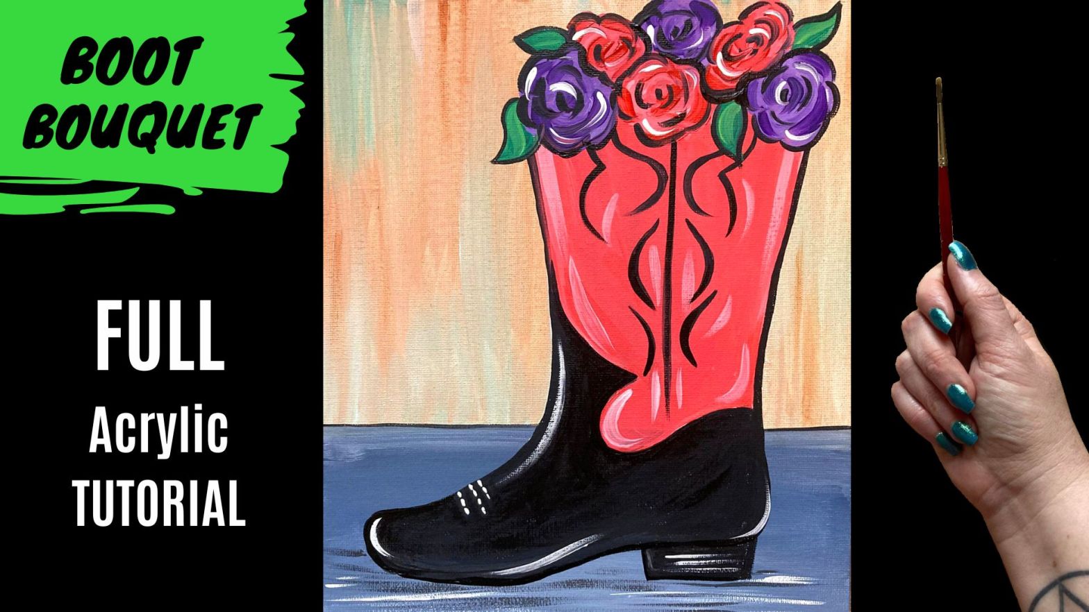 Hello again beautiful artists, and happy almost Valentine’s Day! This week we are painting a fun and easy pink and black cowboy, or cowgirl, boot with a bouquet of roses tucked inside. Paint along and create this easy acrylic painting and create this gift for your valentine this year or just for yourself! And don’t forget to subscribe for new, beginning-level acrylic painting tutorials posted every Saturday. Happy painting, and stay creative!