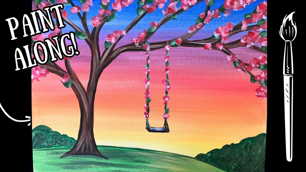 EP232 – ‘Spring Swing’ easy acrylic springtime painting tutorial for beginners step-by-step