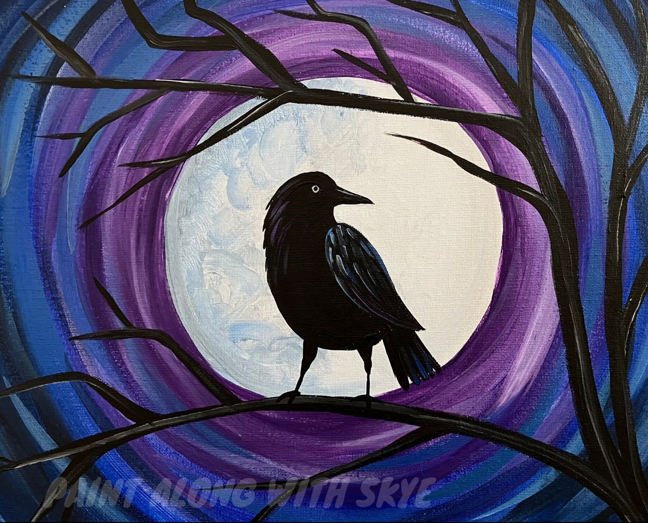 🐦⬛EP223- ‘Raven Silhouette’ easy step by step Halloween spooky fun acrylic painting tutorial