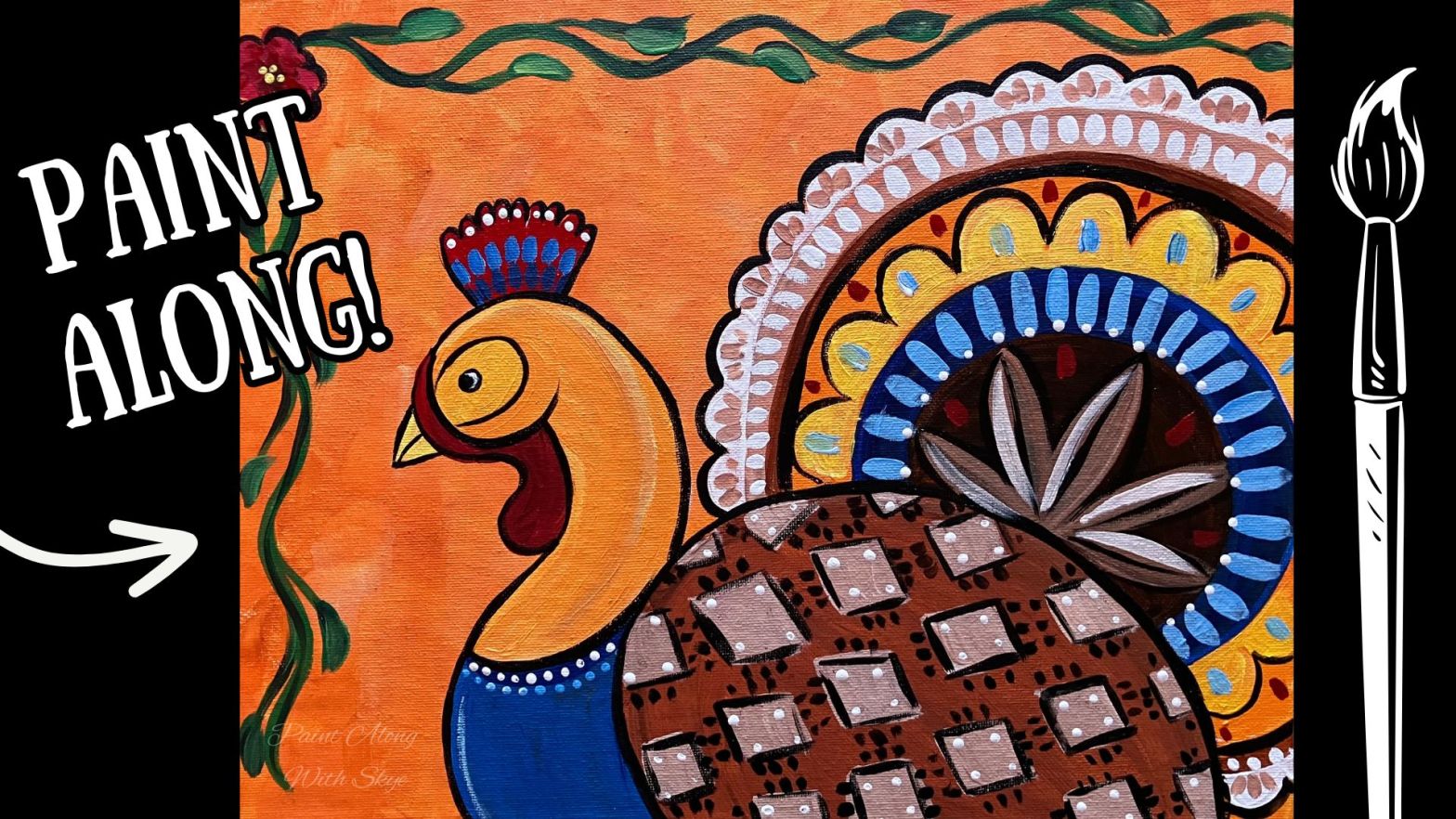 🦃 EP228- ‘Folksy Turkey’ Thanksgiving special easy acrylic painting tutorial for beginners